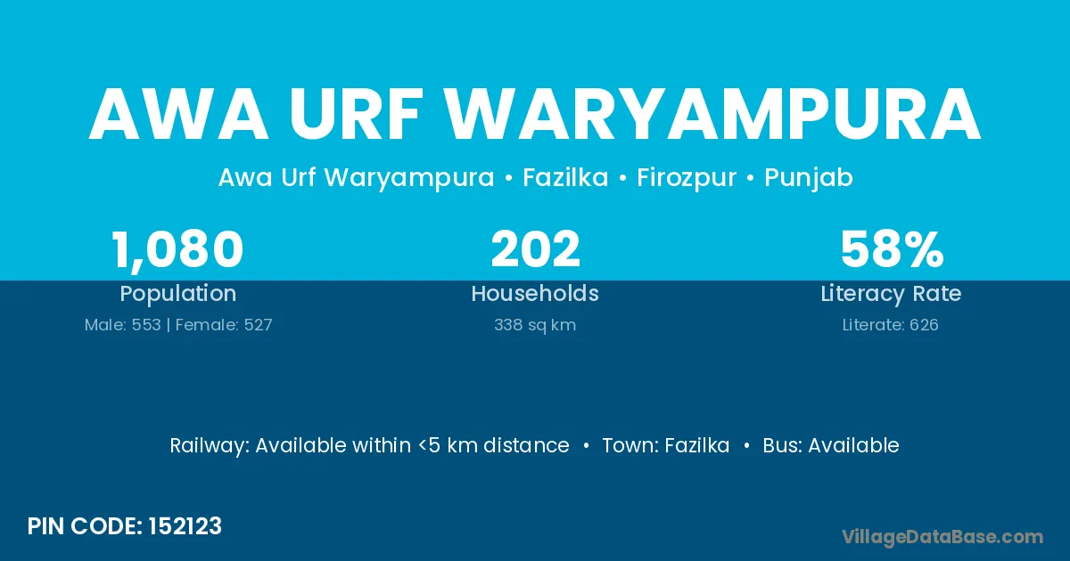 Awa Urf Waryampura village has a total population of 1,080 people, of which 553 are males and 527 are females.
