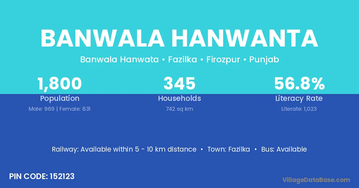 Fazilka is the nearest town to Banwala Hanwanta village for major economic activities
