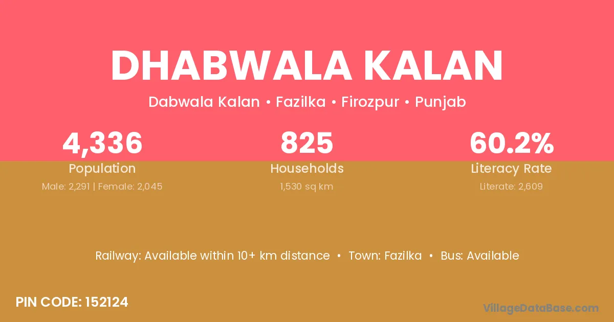 Fazilka is the nearest town to Dhabwala Kalan village for major economic activities