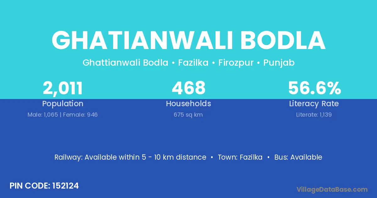 Fazilka is the nearest town to Ghatianwali Bodla village for major economic activities
