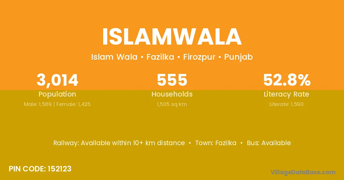 Fazilka is the nearest town to Islamwala village for major economic activities
