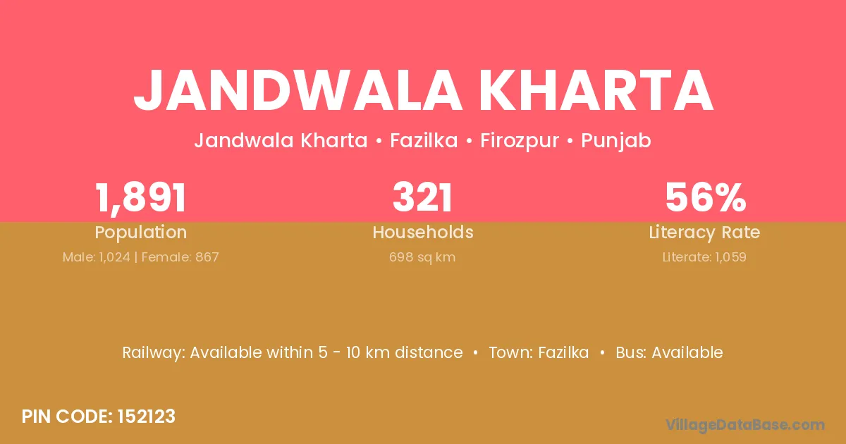 Jandwala Kharta village has a total population of 1,891 people, of which 1,024 are males and 867 are females.