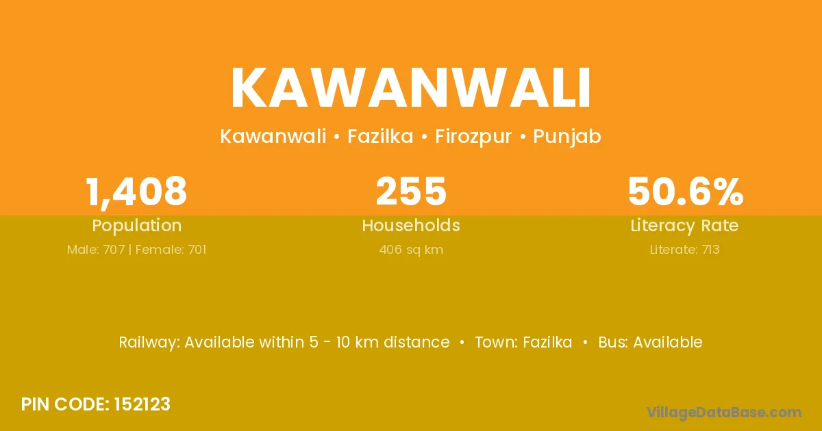 Kawanwali village has a total population of 1,408 people, of which 707 are males and 701 are females.