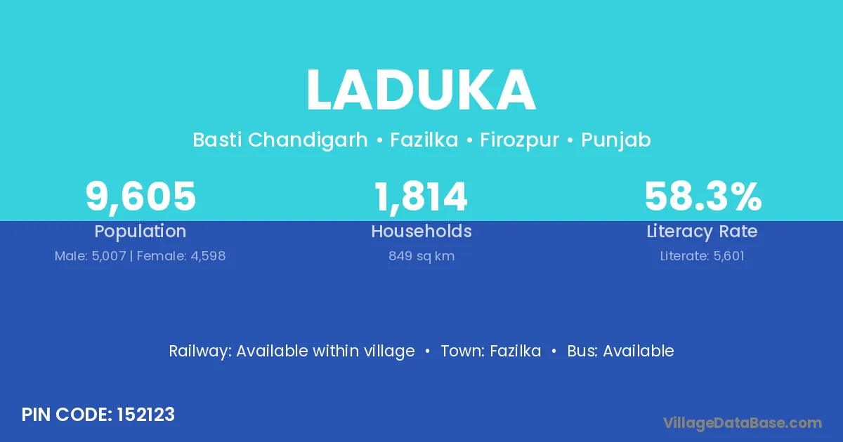 Fazilka is the nearest town to Laduka village for major economic activities