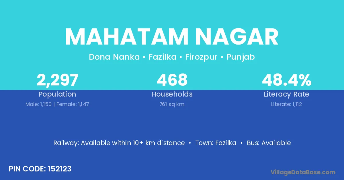 Fazilka is the nearest town to Mahatam Nagar village for major economic activities