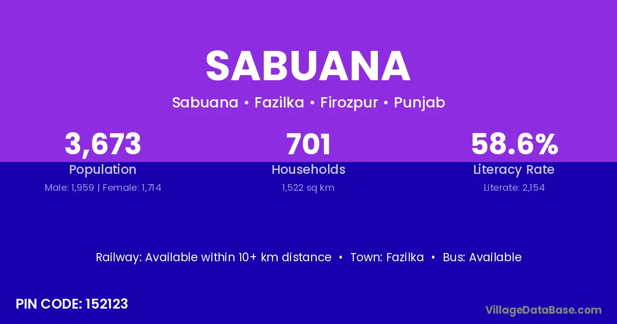 Fazilka is the nearest town to Sabuana village for major economic activities