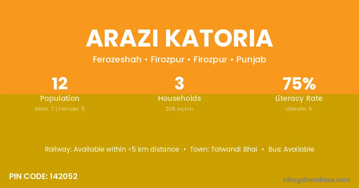 Talwandi Bhai is the nearest town to Arazi Katoria village for major economic activities