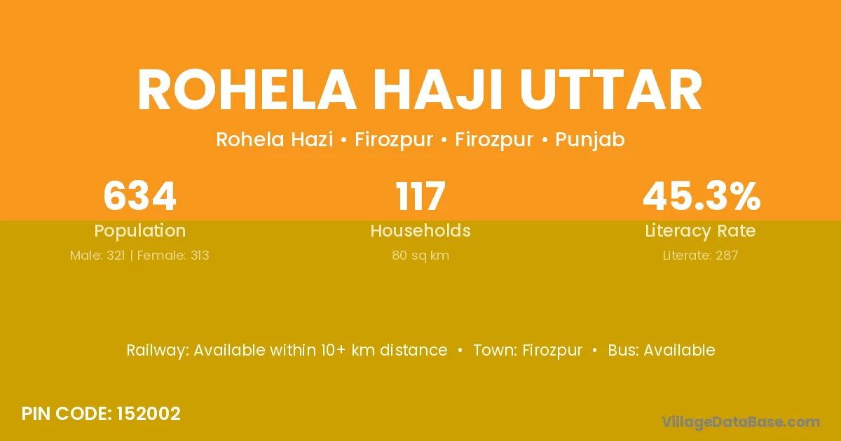 Firozpur is the nearest town to Rohela Haji Uttar village for major economic activities