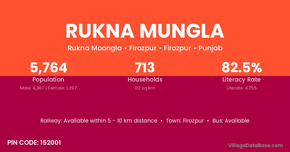 Firozpur is the nearest town to Rukna Mungla village for major economic activities