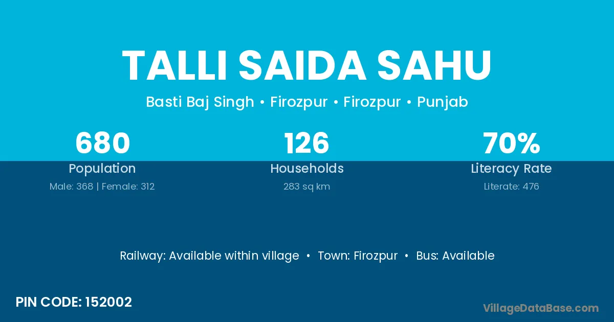 Firozpur is the nearest town to Talli Saida Sahu village for major economic activities