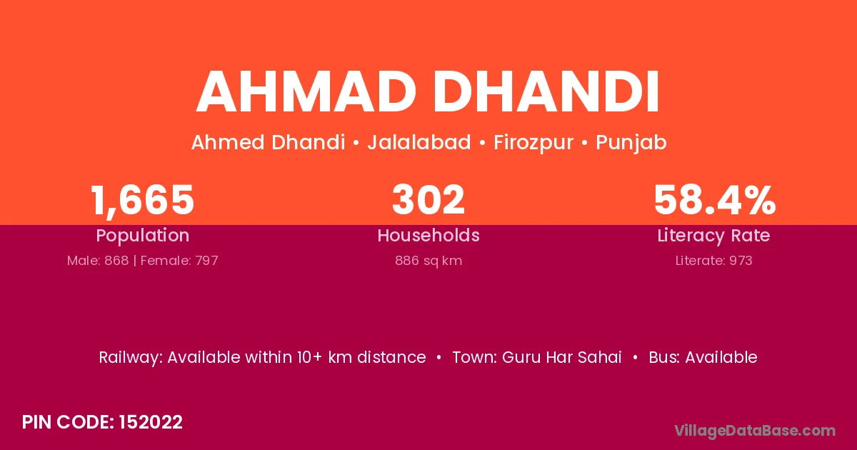 Guru Har Sahai is the nearest town to Ahmad Dhandi village for major economic activities