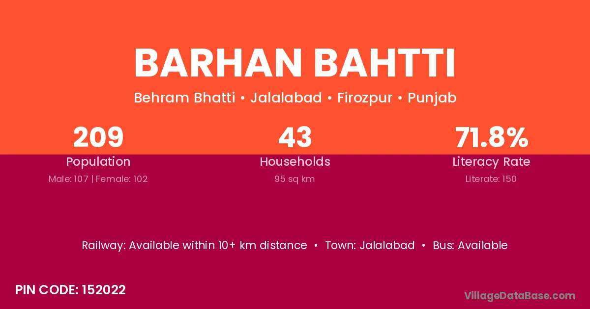 Barhan Bahtti village has a total population of 209 people, of which 107 are males and 102 are females.