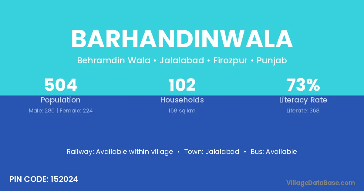 Jalalabad is the nearest town to Barhandinwala village for major economic activities
