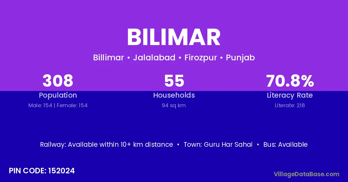 Guru Har Sahai is the nearest town to Bilimar village for major economic activities