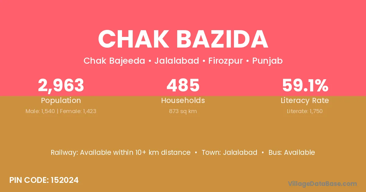 There are approximately 485 households in Chak Bazida village.