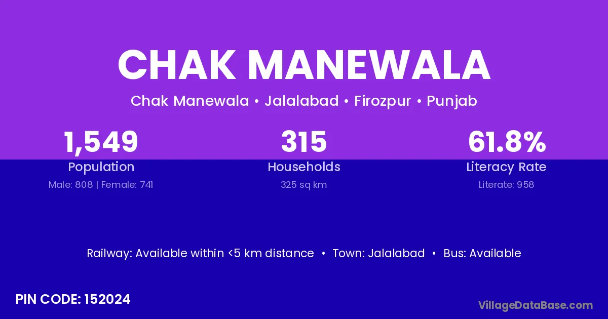 Jalalabad is the nearest town to Chak Manewala village for major economic activities