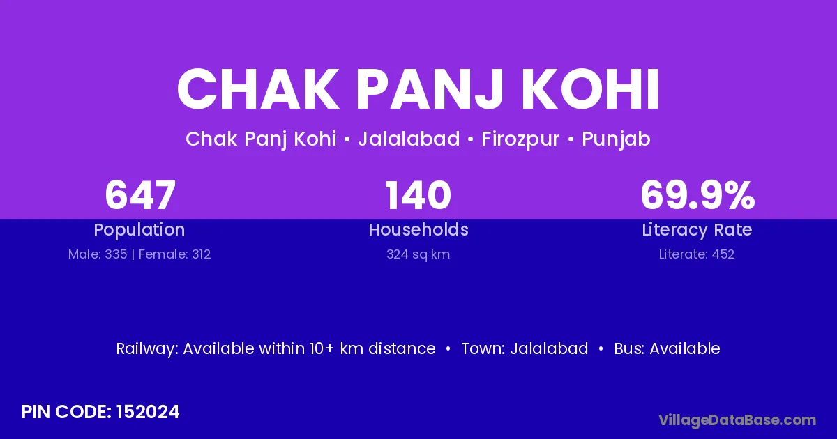 Chak Panj Kohi village has a total population of 647 people, of which 335 are males and 312 are females.