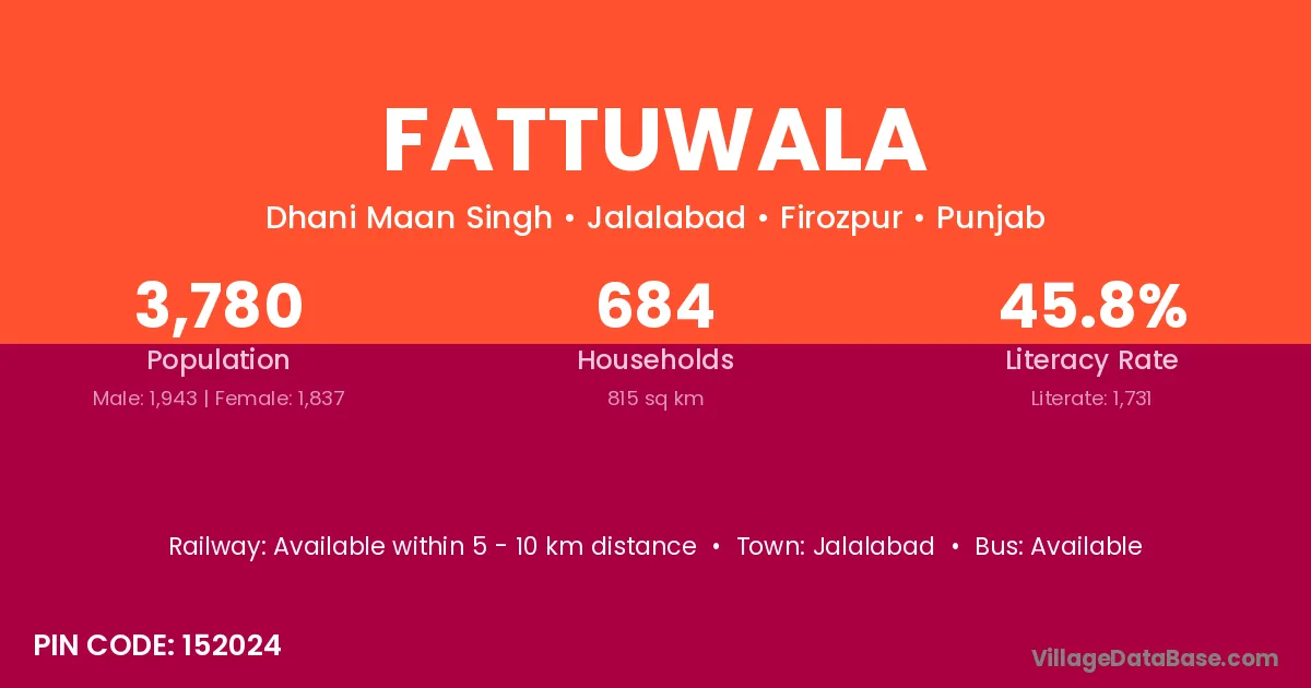 According to Census 2011 information, the village code of Fattuwala village is 152024.