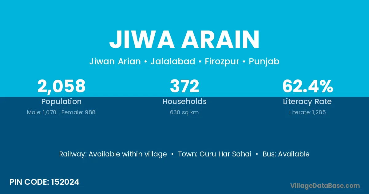Guru Har Sahai is the nearest town to Jiwa Arain village for major economic activities