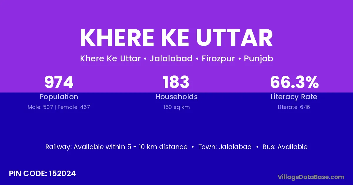 Khere Ke Uttar village has a total population of 974 people, of which 507 are males and 467 are females.