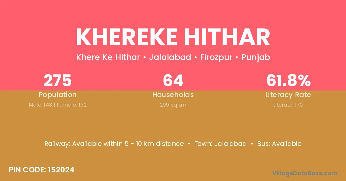Khereke Hithar village has a total population of 275 people, of which 143 are males and 132 are females.