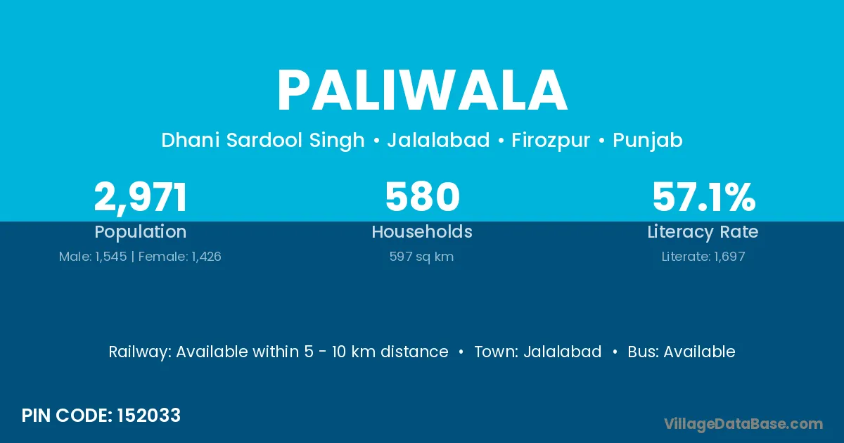 Jalalabad is the nearest town to Paliwala village for major economic activities