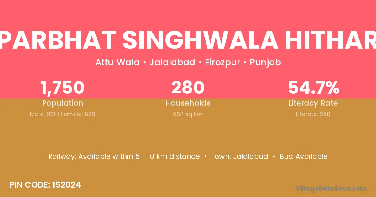 Jalalabad is the nearest town to Parbhat Singhwala Hithar village for major economic activities