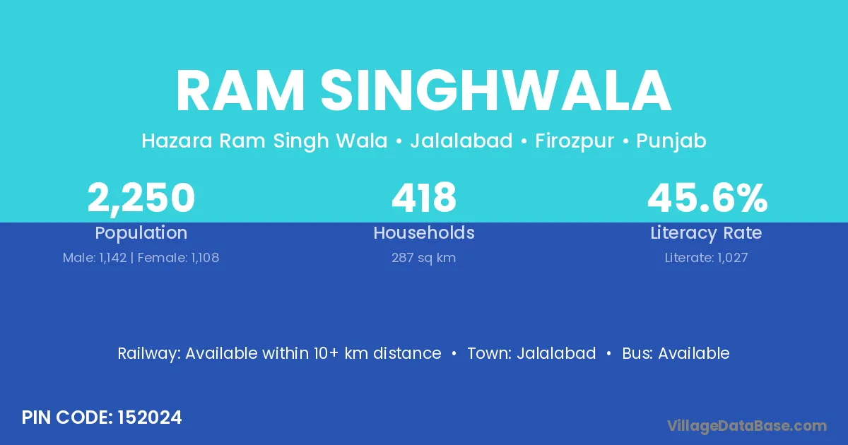 Jalalabad is the nearest town to Ram Singhwala village for major economic activities