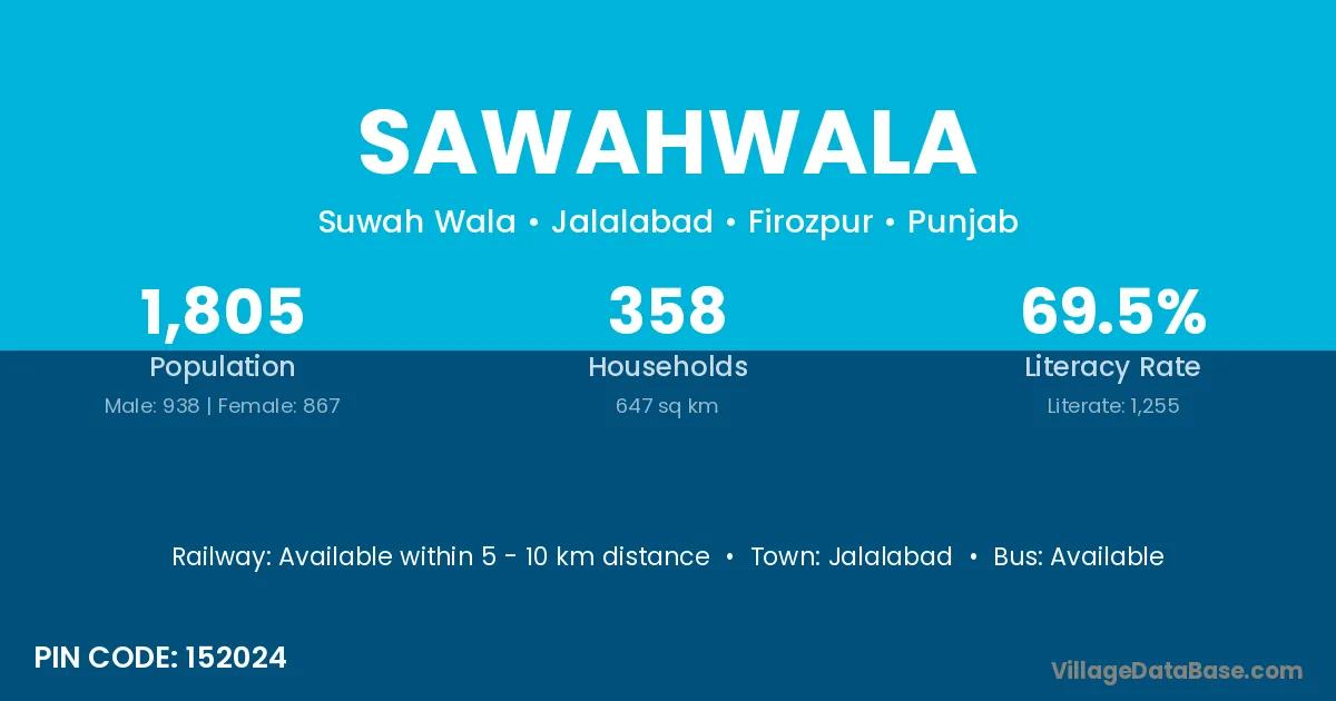 Jalalabad is the nearest town to Sawahwala village for major economic activities