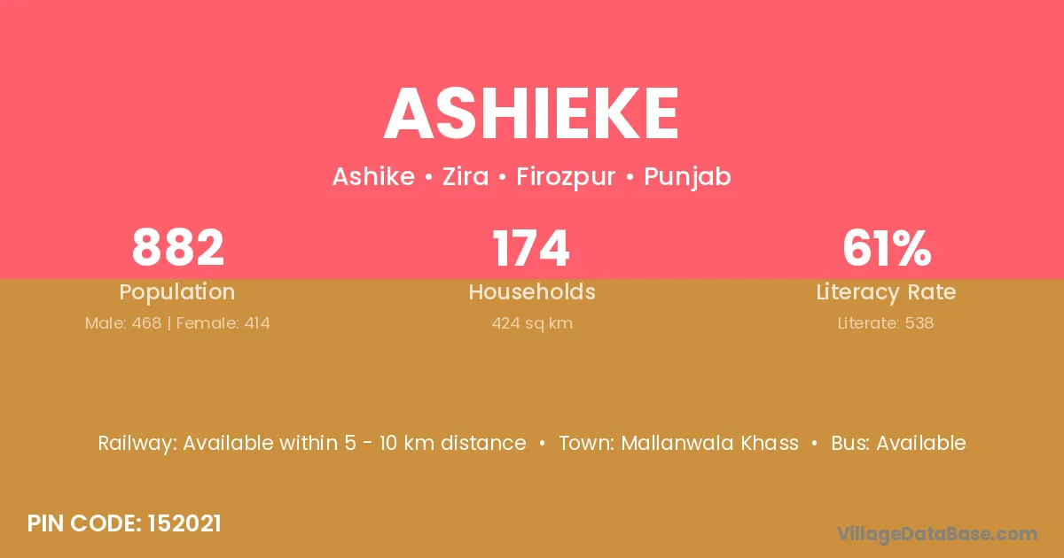 Mallanwala Khass is the nearest town to Ashieke village for major economic activities