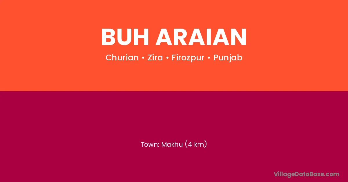 Buh Araian village is located in the Zira Tehsil of the Firozpur district in Punjab .