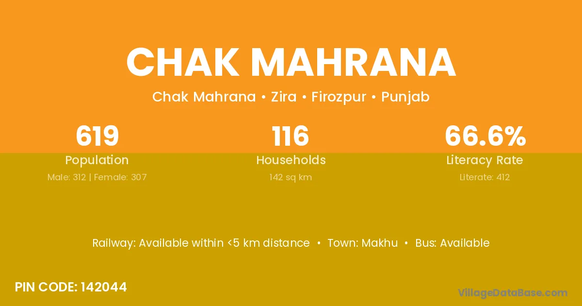 Makhu is the nearest town to Chak Mahrana village for major economic activities
