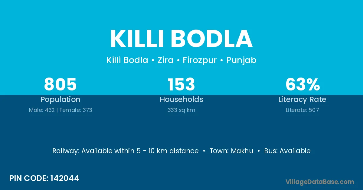 Makhu is the nearest town to Killi Bodla village for major economic activities