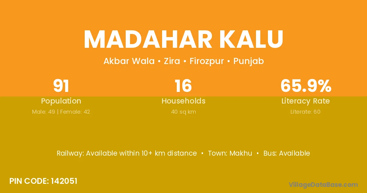 Madahar Kalu village has a total population of 91 people, of which 49 are males and 42 are females.