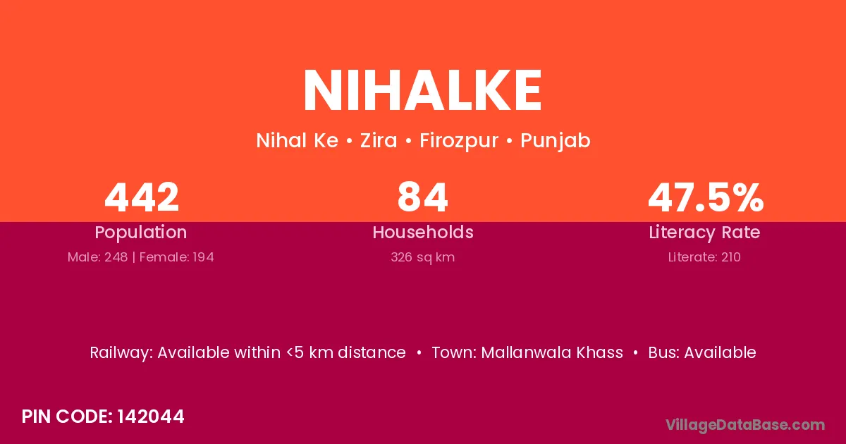 Mallanwala Khass is the nearest town to Nihalke village for major economic activities