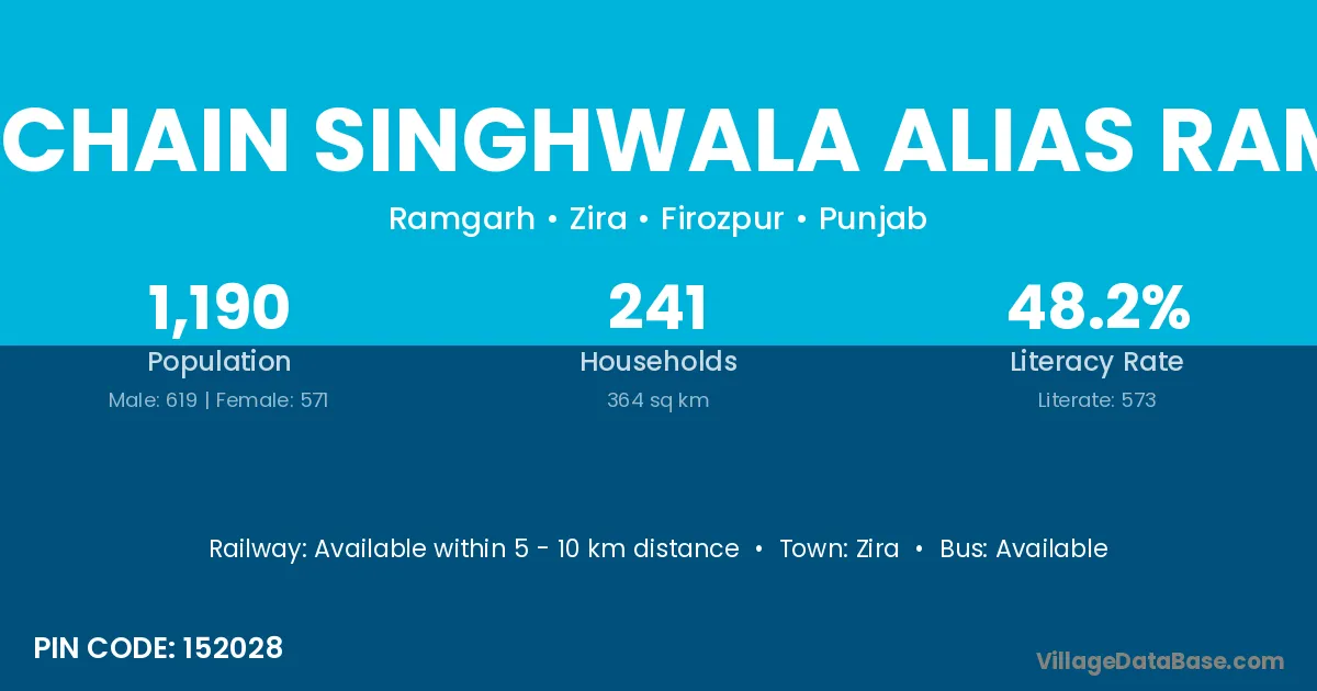 Wara Chain Singhwala Alias Ramgarh village has a total population of 1,190 people, of which 619 are males and 571 are females.
