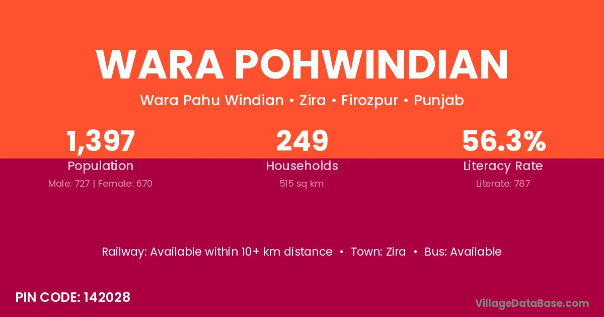 Wara Pohwindian village is located in the Zira Tehsil of the Firozpur district in Punjab .