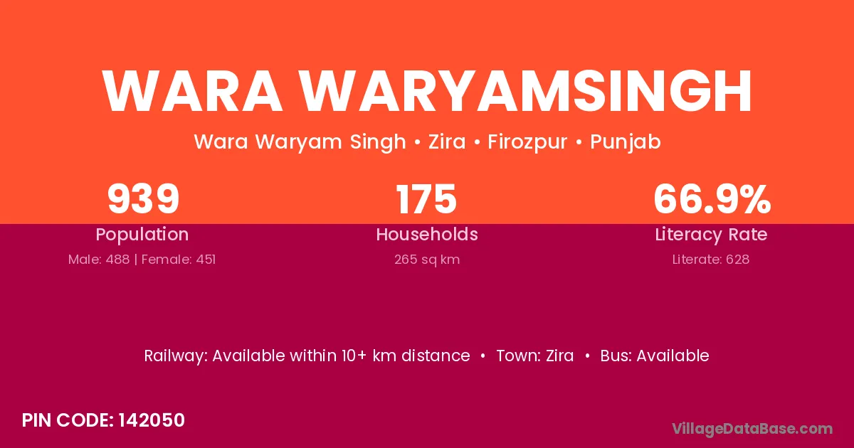Wara Waryamsingh village has a total population of 939 people, of which 488 are males and 451 are females.