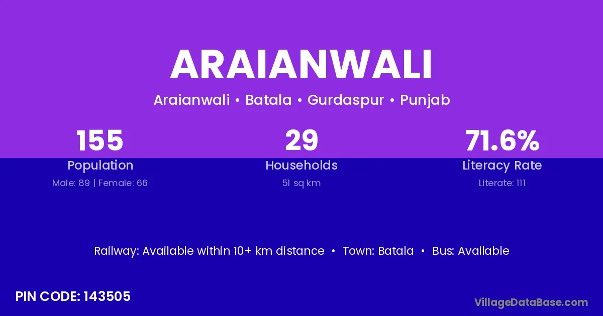 Batala is the nearest town to Araianwali village for major economic activities