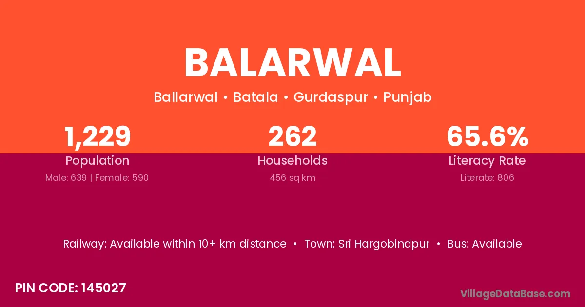 Balarwal village has a total population of 1,229 people, of which 639 are males and 590 are females.