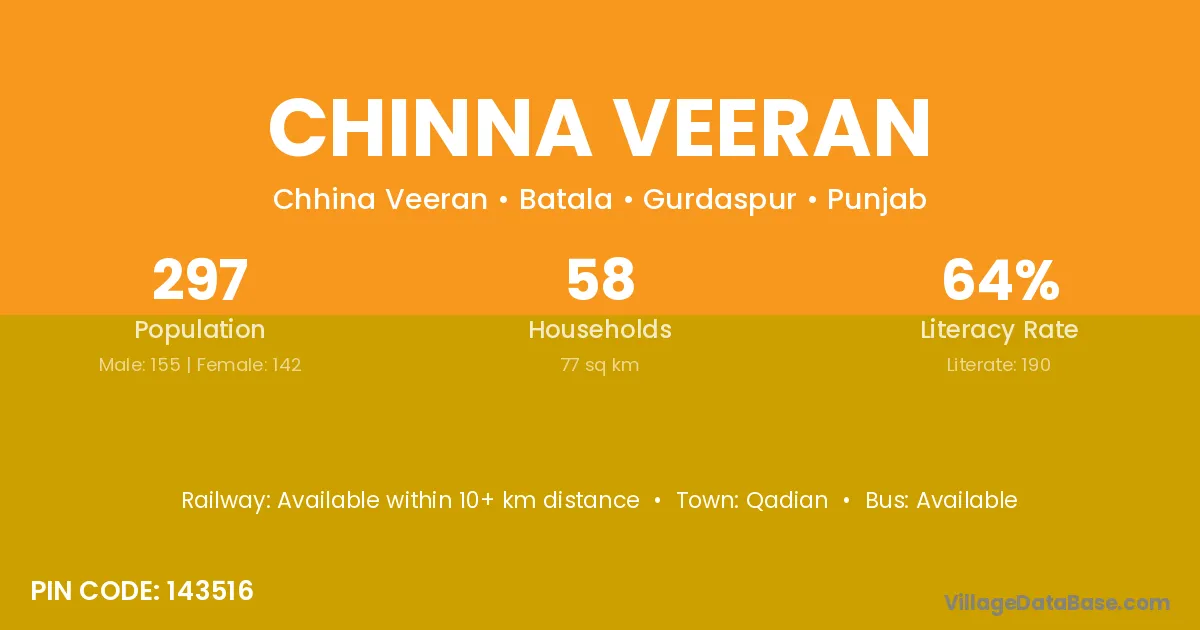 Qadian is the nearest town to Chinna Veeran village for major economic activities
