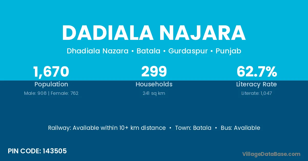 Batala is the nearest town to Dadiala Najara village for major economic activities