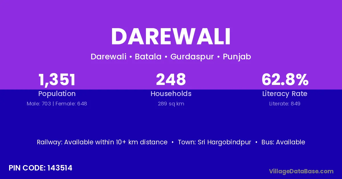Sri Hargobindpur is the nearest town to Darewali village for major economic activities
