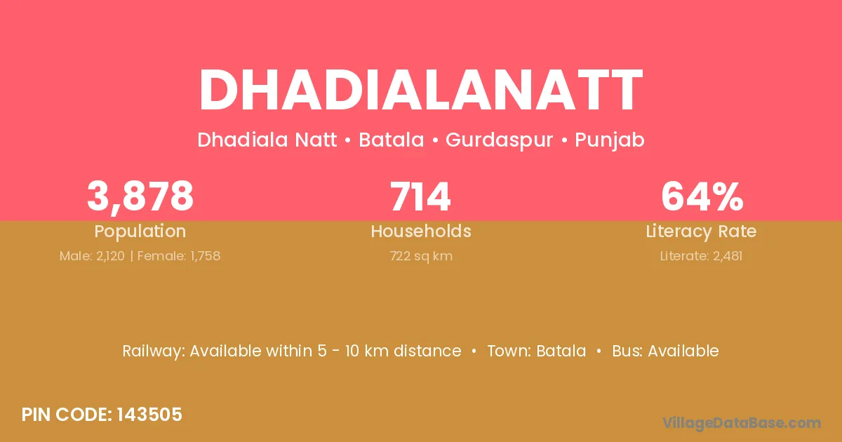 Batala is the nearest town to Dhadialanatt village for major economic activities