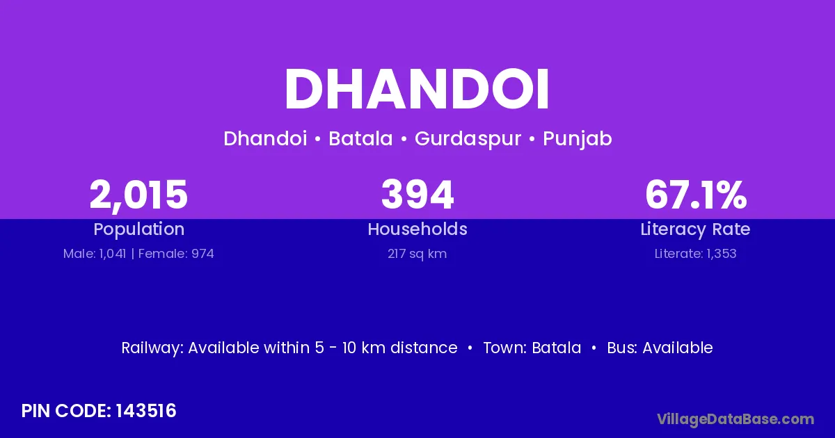 Batala is the nearest town to Dhandoi village for major economic activities