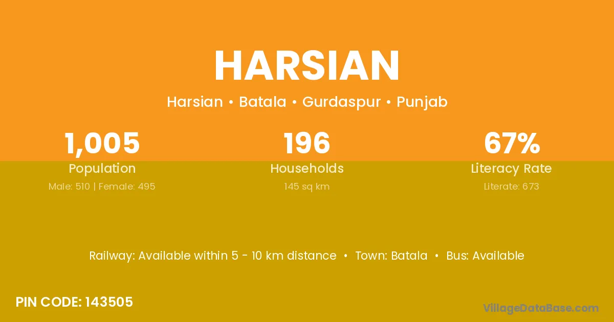 Batala is the nearest town to Harsian village for major economic activities