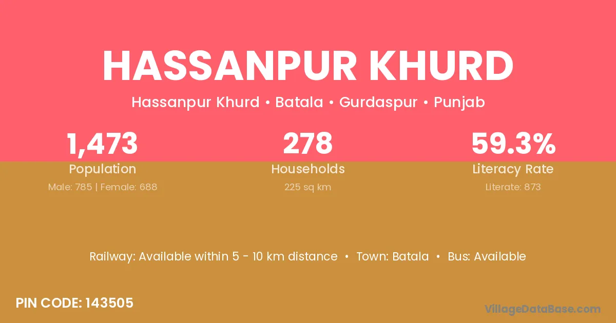 Batala is the nearest town to Hassanpur Khurd village for major economic activities