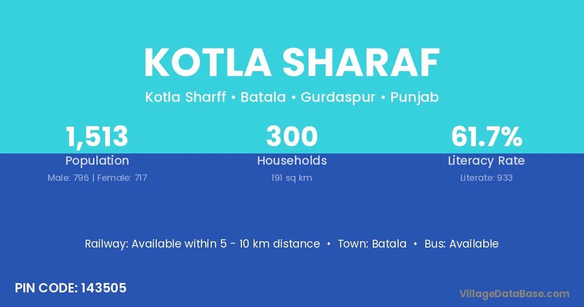Batala is the nearest town to Kotla Sharaf village for major economic activities