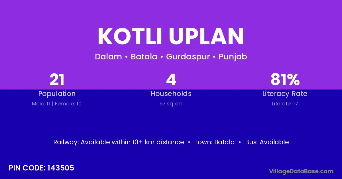 Batala is the nearest town to Kotli Uplan village for major economic activities