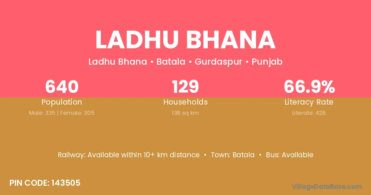 Ladhu Bhana village has a total population of 640 people, of which 335 are males and 305 are females.
